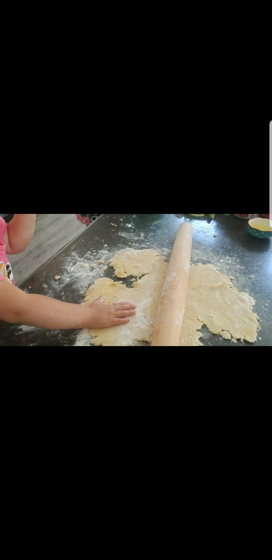 4. Remove 1 crust from the fridge and place on a lightly floured surface, with a rolling pin, begin to roll out the dough from the center, outward.